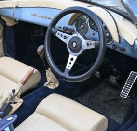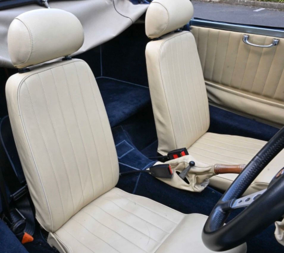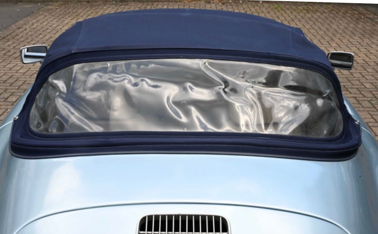 As is often the case with recreations, a little variation in panel gaps is noted. This is particularly evident at the leading edges of bonnet and rear engine cover. The fabric hood is finished in contrasting dark blue and is in very good condition. Nevertheless, the car, as with a lot of sports cars, would rather not be driven in the rain! The rear screen is clear, un-fogged and uncracked. The fit of the hood may be improved by reshaping or adjusting the underlying hoops.