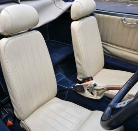Door cards and stitched dashboard top roll are dressed in matching hide. Seats and windows function electrically which is the first time we’ve even seen this!