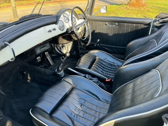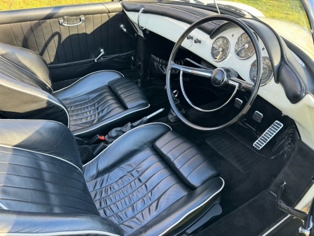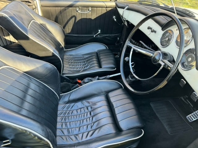 Finished in a stunning Cream coachwork with Black Leather, Black Carpets and Black Roof.