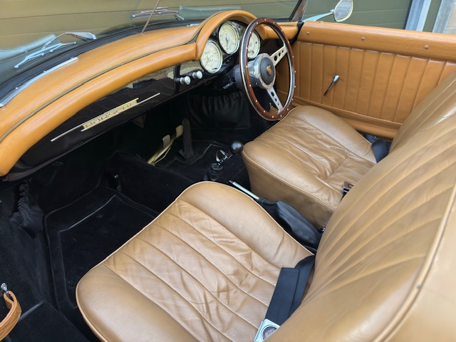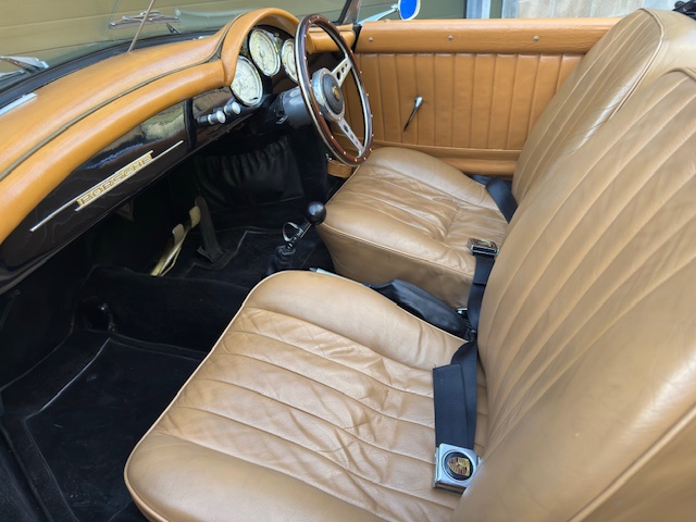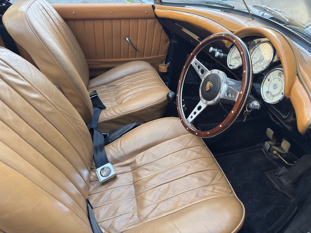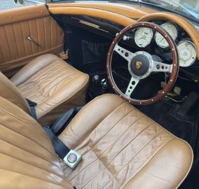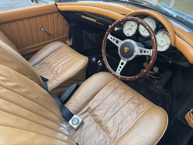 For the last six months, this beauty has been in the hands of a well-known Porsche guru, undergoing an extensive, exhaustive, and comprehensive recommissioning. No corner has been cut. Thousands have been spent on new parts, from new wheels and tyres to a very comfy pair of original 356 seats trimmed in tan leather. The soft top and side-screens are "as new," and countless new badges and chrome pieces gleam.