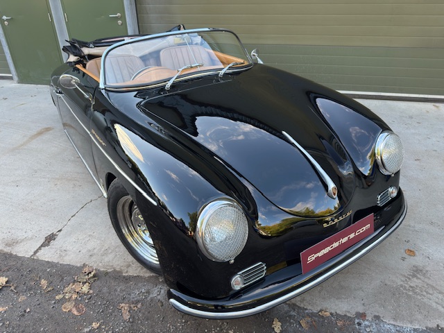 Finished in stunning black coachwork with genuine 356 tan leather seats, black carpets, and a black roof, this Speedster exudes timeless elegance. The new, full tan tonneau cover, expertly crafted by the legendary Steve Bowles, completes the picture of sophisticated allure.