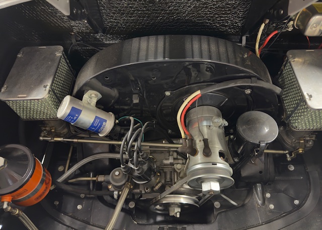 There is currently a 1600 cc engine from 1960 in this Speedster, which is approx 80 hp. This performance increase was achieved, among other things, by two 40-sier Weber gassers and by High